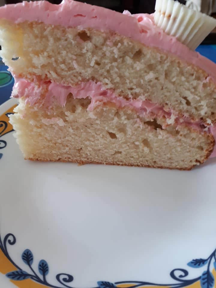 * Mon glaçage est rose car j'ai ajouter de la poudre de jello aux fraises dedans. C'est très bon ça donne un petit goût de fraises au glaçage. J'ai également ajouter des chocolat reese blanc sur le dessus.